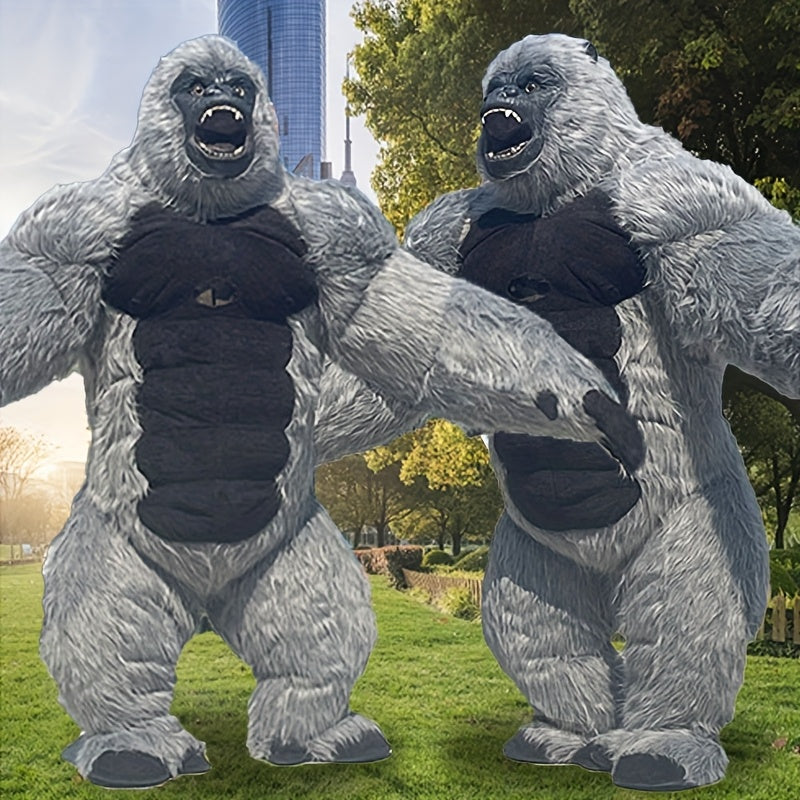 Bring the fun to any event with this cartoon-style inflatable gorilla costume featuring playful black fur accents. Perfect for Halloween, Christmas parties, corporate events, and parades, it’s designed to entertain and grab attention.